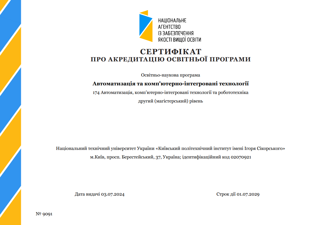 ID 53260 Національний технічний університет України «Київський політехнічний інститут імені Ігоря Сікорського», ОП Автоматизація та комп’ютерно-інтегровані технології